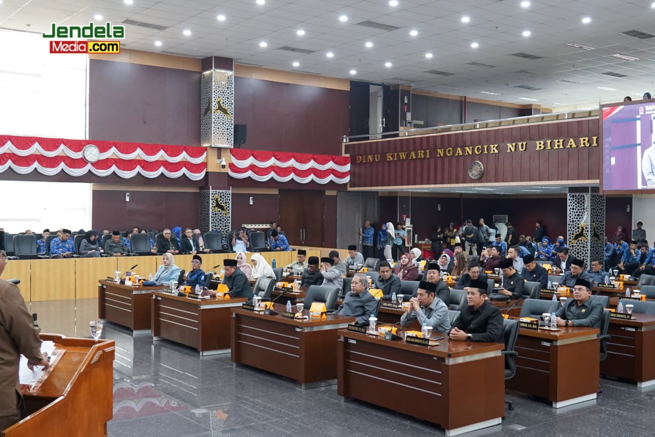 DPRD Kota Bogor menggelar rapat paripurna, Selasa (17/6/2025). Dalam rapat paripurna tersebut, Wali Kota Bogor, Dedie A. Rachim menyerahkan rancangan Perwali Pertanggungjawaban Pelaksanaan APBD 2024 dan Perubahan KUA-PPAS 2025 kepada Ketua DPRD Kota Bogor, Adityawarman Adil.